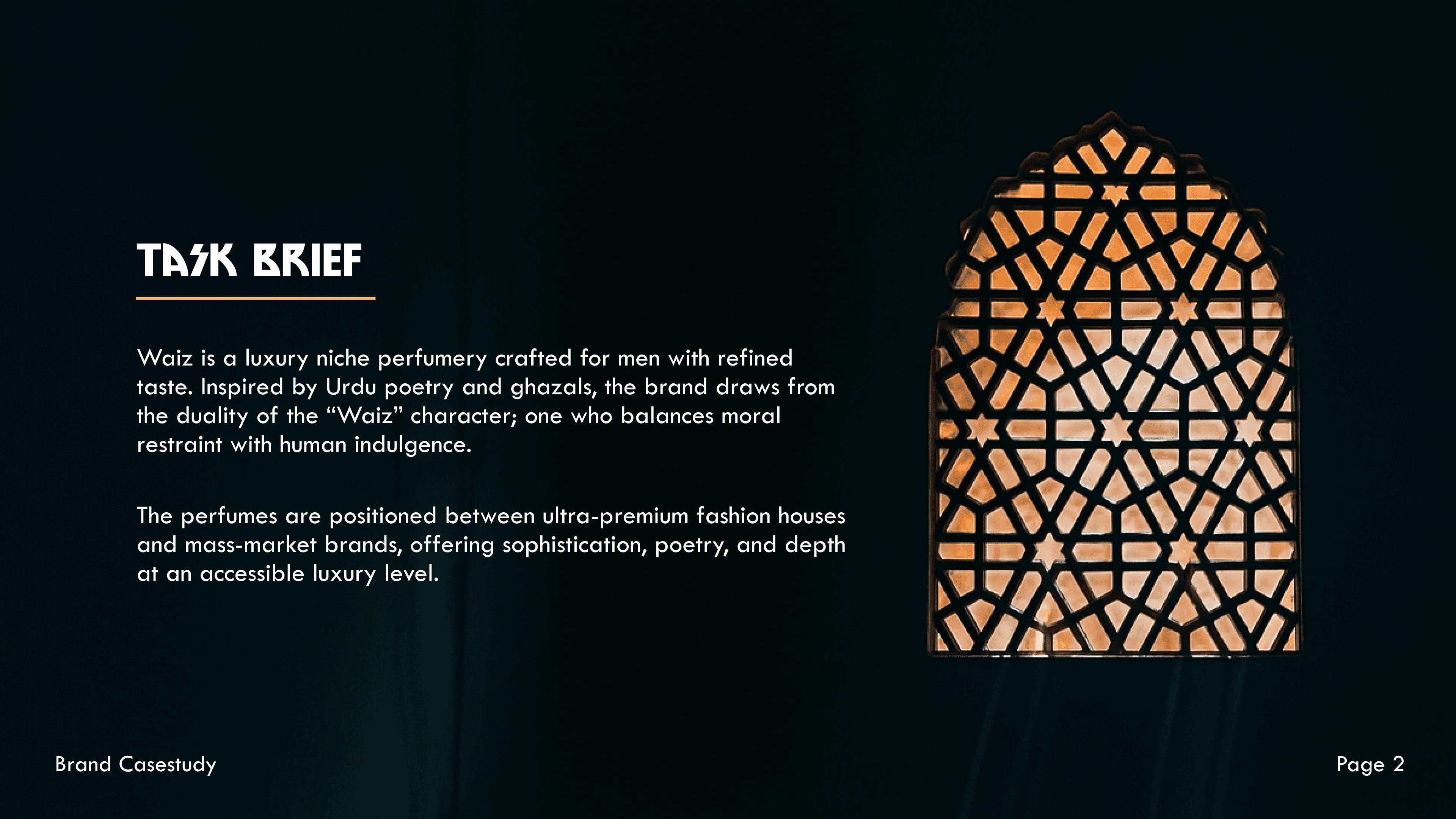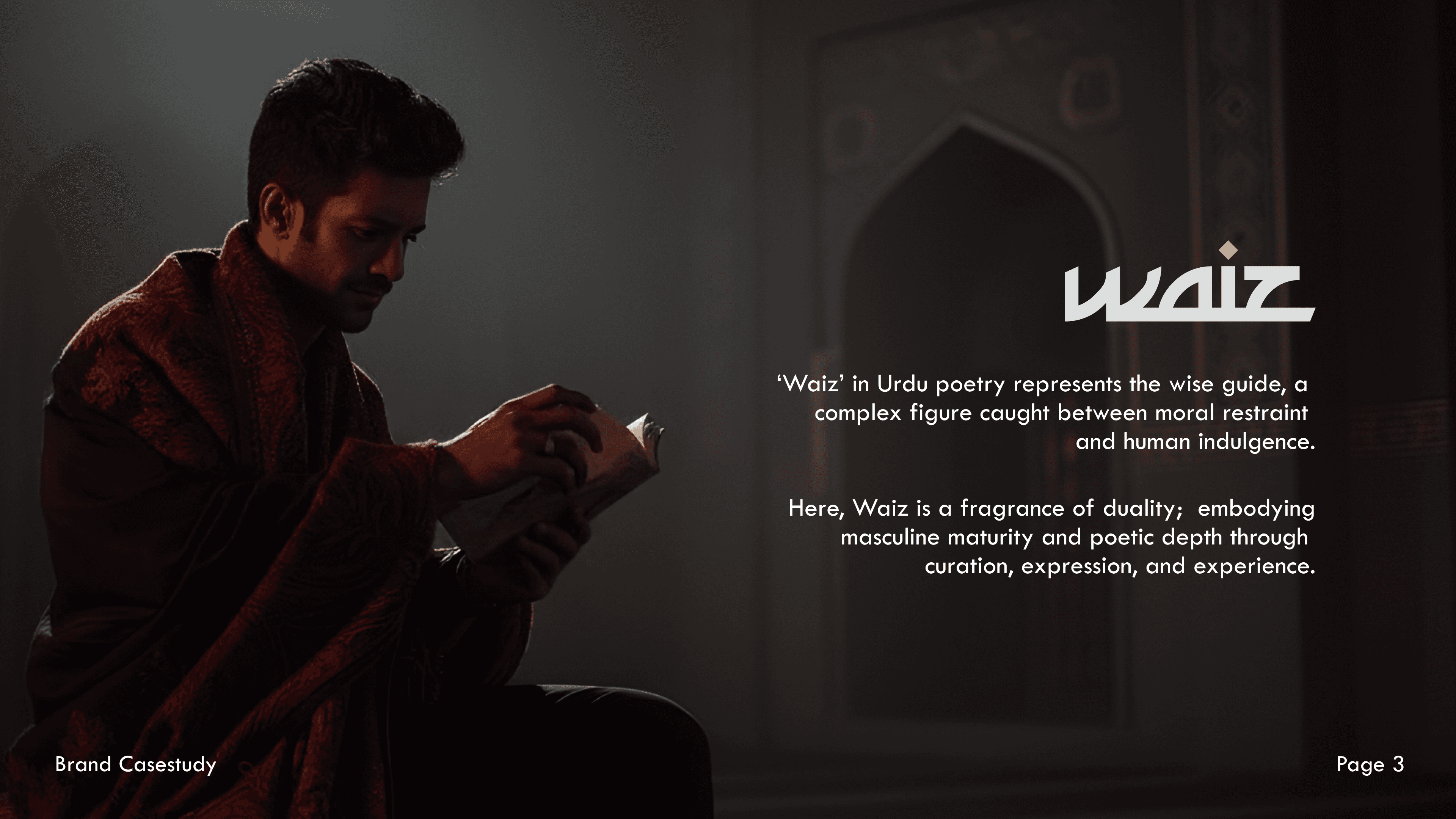 Waiz is a luxury niche perfumery inspired by Urdu poetry, blending masculine strength with poetic depth. Built on tasteful curation, poetic expression, and sensory experience, it offers fragrances that capture the complexity of men.